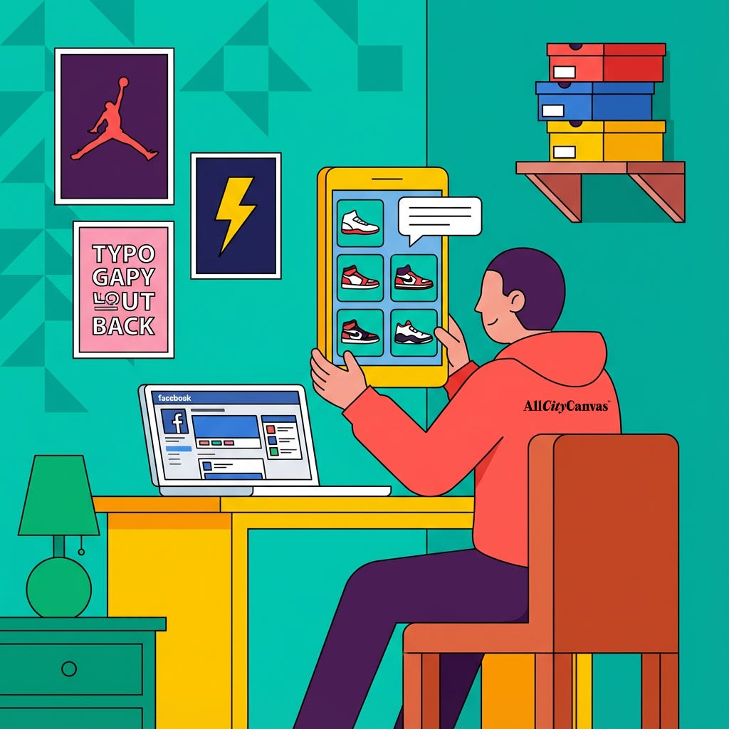 Aparecieron grupos cerrados de Facebook: “Sneakers México”, “Compra Venta de Tenis Originales”, “Jordan México”. Espacios donde se intercambiaban referencias, se preguntaban por vendedores confiables, se publicaban legit checks (revisiones de autenticidad hechas por la comunidad). La autenticación seguía siendo trust-based, pero ahora había un componente social más amplio. Si alguien te estafaba, lo exponías en el grupo. Si un vendedor era confiable, acumulaba reputación.