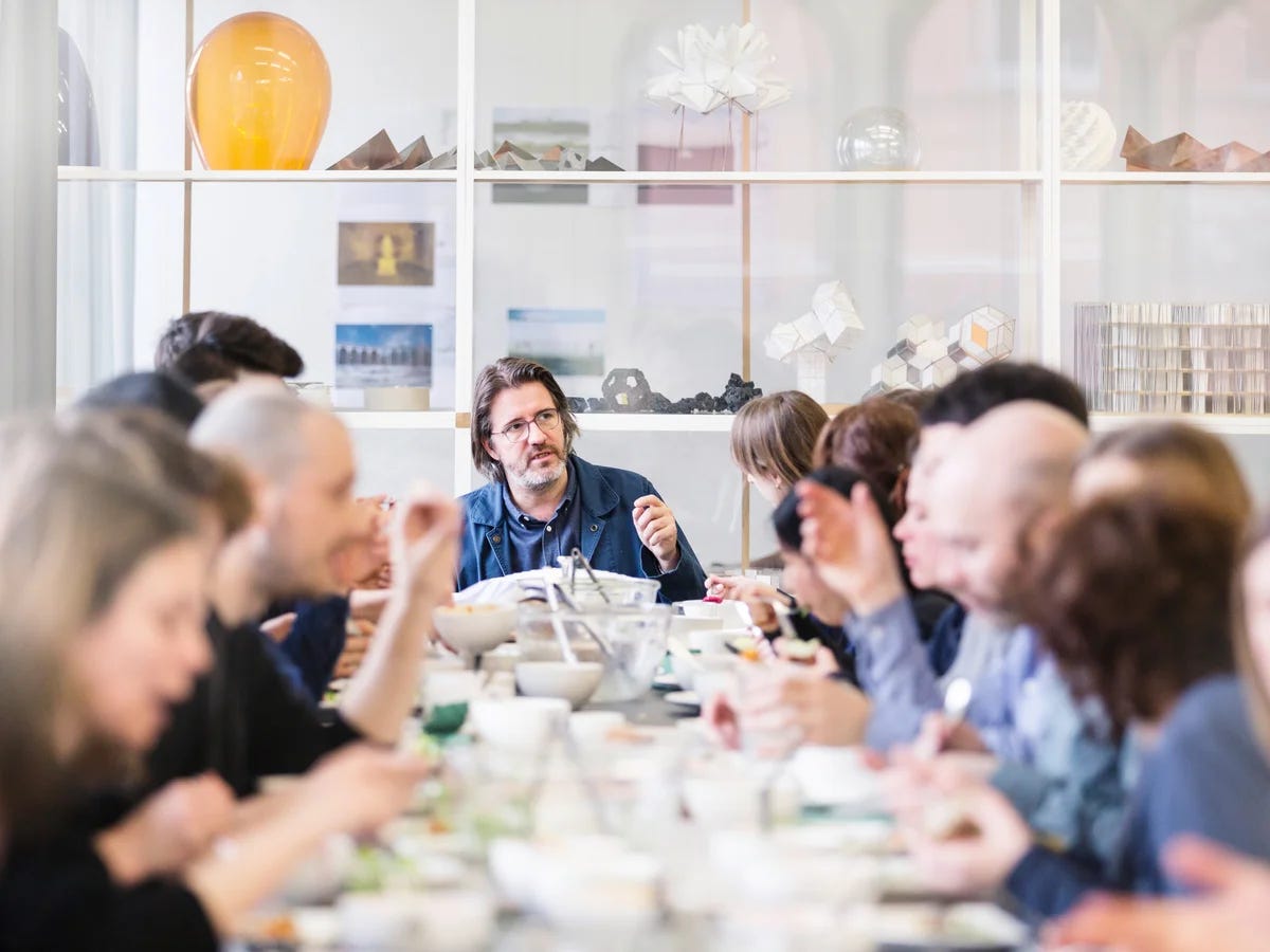 Hoy el centro de nuestro substack es Olafur Eliasson, un artista a quien las categorías convencionales no sirven para describir lo que hace. No es artista de galería aunque sus obras circulen por las instituciones más importantes del planeta, tampoco es activista aunque muchas de sus piezas tengan intenciones políticas explícitas, mucho menos es diseñador de productos a pesar de haber creado objetos que la gente usa en su vida diaria. Es todas esas cosas al mismo tiempo, operando desde Studio Olafur Eliasson en Berlín, un espacio que funciona más como laboratorio renacentista que como estudio de artista contemporáneo, donde trabajan no solo artistas sino también arquitectos, ingenieros, artesanos, cocineros, historiadores del arte, todos orbitando alrededor de proyectos que desafían cualquier definición disciplinaria.